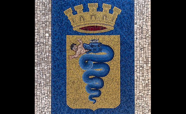 Alcuni storici ritengono che il simbolo faccia riferimento al serpente bronzeo di Mosè, conservato nella Basilica di S. Ambrogio, e che i Visconti lo avrebbero adottato come proprio stemma dopo essere divenuti signori di Milano. Una delle leggende più note, riferita anche da Galvano Fiamma e Bonvesin De La Riva, racconta invece che un antenato dei Visconti, tale Ottone, avrebbe partecipato all’assedio di Gerusalemme durante la prima crociata nel 1099. In questa occasione Ottone avrebbe combattuto contro un valoroso saraceno di nome Voluce, che sul suo scudo portava l’emblema di un serpente che divorava un essere umano. Avendolo sconfitto, il Visconti si sarebbe appropriato dello scudo del nemico e, per celebrare la vittoria, avrebbe adottato il biscione come simbolo della famiglia. L’episodio è citato anche da Torquato Tasso ne La Gerusalemme liberata (Libro I, LV):