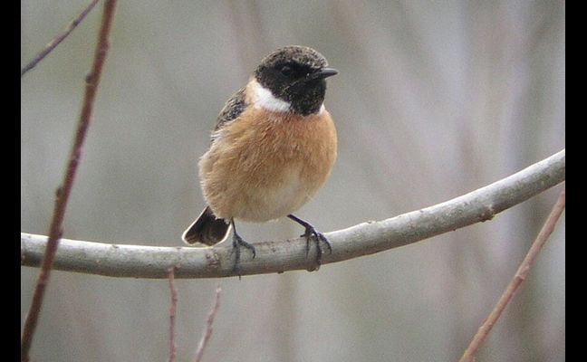 Il maschio ha capo nero, collare bianco, petto rosso-ruggine, ventre bianco, dorso bruno scuro groppone e macchia alare bianca. La femmina è meno scura sul dorso e non ha bianco e nero sul capo. La macchia alare e il petto sono degli stessi colori del maschio, anche se meno contrastati. Oltre a terreni aperti, zone coltivate, boschi frequenta anche le zone umide.