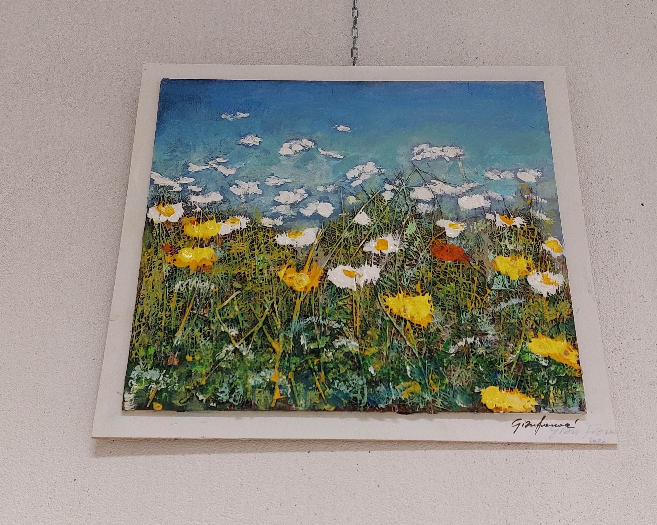 L’artista 𝐆𝐢𝐚𝐧𝐟𝐫𝐚𝐧𝐜𝐨 𝐅𝐫𝐚𝐧𝐜𝐨𝐜𝐜𝐢, nativo di Civita Castellana (Viterbo) e cadrezzatese di adozione, presenta 𝐝𝐢𝐩𝐢𝐧𝐭𝐢 𝐢𝐧 𝐫𝐢𝐥𝐢𝐞𝐯𝐨 creati con "materiali di fortuna" raccolti passeggiando: carta riciclata, sughero, erbe, rametti.