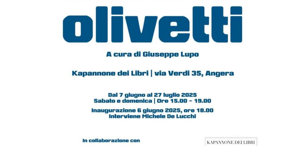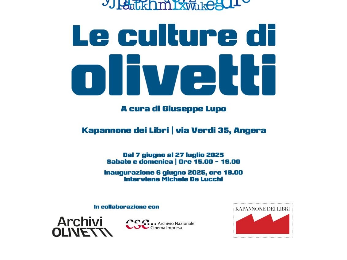 L'esposizione "Le Culture di Olivetti" a cura di G. Lupo, in collaborazione con l'Archivio Storico Olivetti, resta allestita al Kapannone dei Libri fino al 27 luglio. Ingresso libero nel fine settimana. Il Kapannone osserva poi la pausa estiva dal 28 luglio al 29 agosto compresi, riapertura il 30 di agosto nei consueti orari.