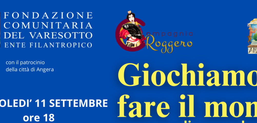 Venerdì 11 Settembre da non perdere "Giochiamo a fare il mondo" spettacolo teatrale presso l'Amaltheatro - Cascina Roggero a Barzola. Al termine possibilità di acquistare prodotti della Rossi d'Angera. Il ricavato verrà donato al Fondo Angelo Rizzi.
