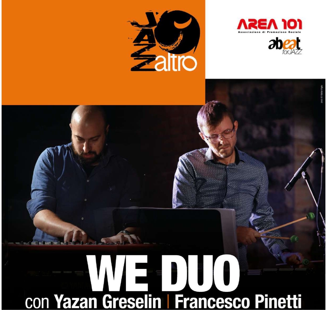 Nell'ambito della rassegna JAZZaltro in programma "We Duo" con Yazan Greselin e Francesco Pinetti. Il concerto si terrà in via Greppi Piazza ex- Sama venerdì 12 settembre alle ore 21.00