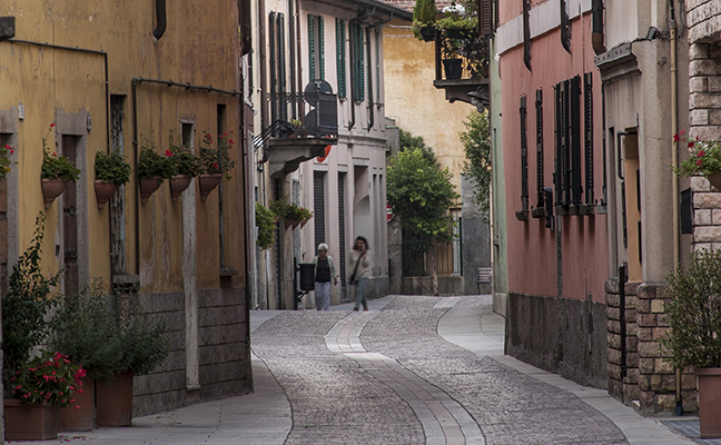 La via corre in parallelo al lungolago, attraversa il nucleo storico del borgo e corrisponde all’antica Mediolanum Verbannus, la strada che univa Milano e il lago in epoca romana.