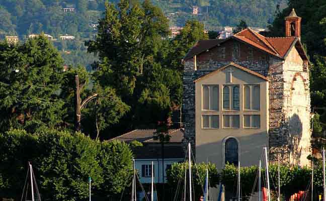 La facciata venne ristrutturata nel 1943 con un apparato murario, opera dell'architetto Rino Ferrini di Angera, su cui furono incisi i livelli delle piene del lago del 4 Novembre 1705 e del 4 Ottobre 1868.